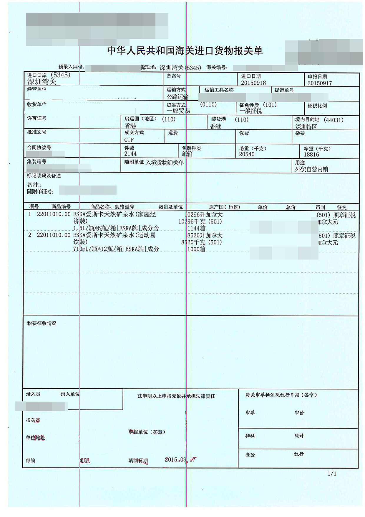 四、礦泉水進(jìn)口案例的詳細(xì)信息:
